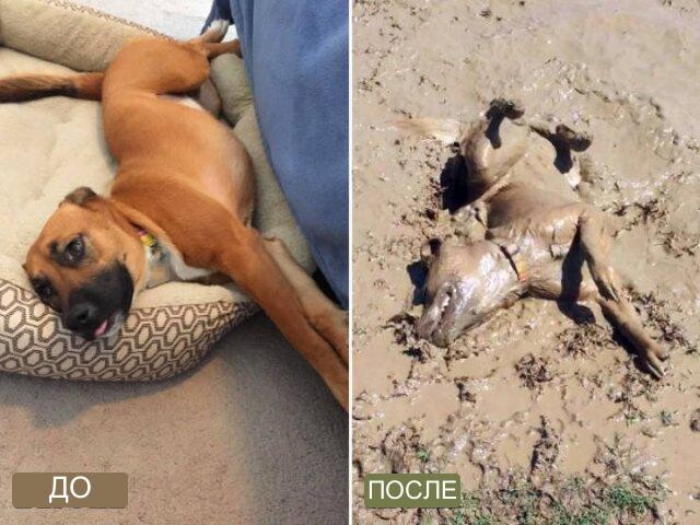 Если бы существовали грязевые курорты для собак, то пушистики проводили бы всё своё время только там. Впрочем, зачем четвероногим друзьям человека куда-то специально отправляться, если грязевую ванну можно принять в первой попавшейся луже...