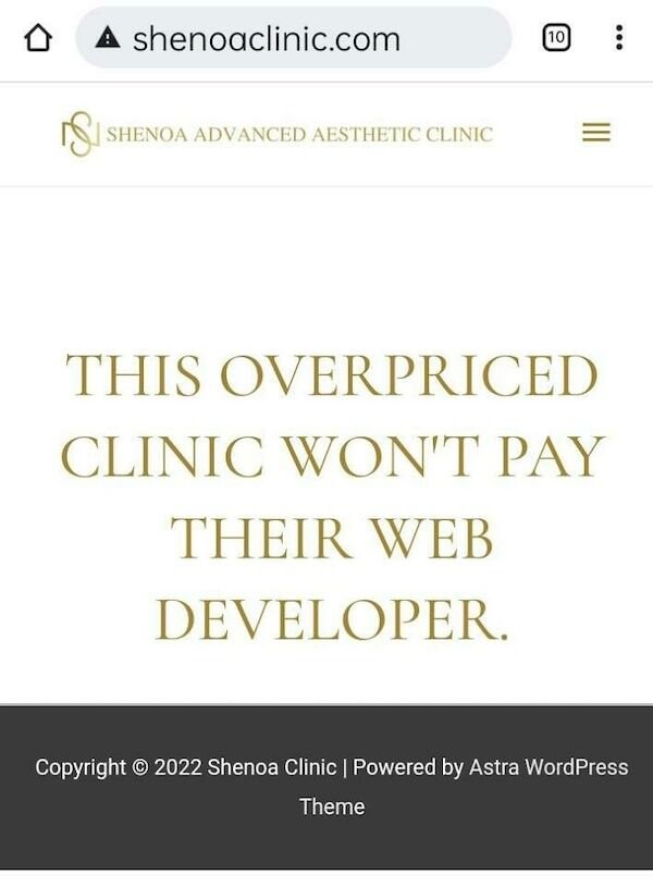 4. Напоминание о необходимости платить веб-дизайнерам за работу ("Эта клиника с завышенными ценами не хочет платить своим веб-разработчикам")