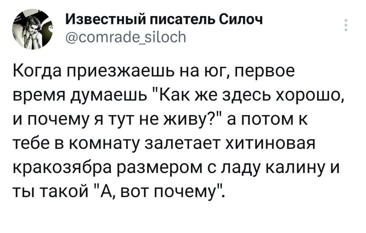 Прикольные твиты (24 фото) 05 октябрь 2023 231 фото приколы 1 Свежая коллекция скриншотов из популярной соцсети для поддержания вашего хорошего настроения! запостил(а) admin Вернуться назад 0 Смотрите также Прикольные твиты обо всём на свете (34 фото) Прикольные комментарии на Бугаге (27 фото) Прикольные комментарии на Бугаге (30 фото) Прикольные комментарии из социальных сетей (16 фото) Демотиваторов порция свежая (14 фото) А что там на главной? ))) Прокомментировать Введите код с картинки: Отправить Комментарии (1) #1 muninn884 Посетители 6 октября 2023 08:58 0 Привет. Я Альбина, 25 лет, из России. Я ищу парня для общения, встреч, а возможно и для серьезных отношений. Напиши мне, пожалуйста, в Телеграм: albina986 Ответить