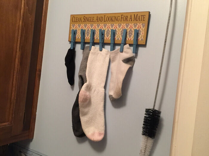 1. "У моей мамы это висит над сушилкой в прачечной" (надпись: "Чистые, одинокие и ищущие пару") (фото: Sn34kyMofo/Reddit)