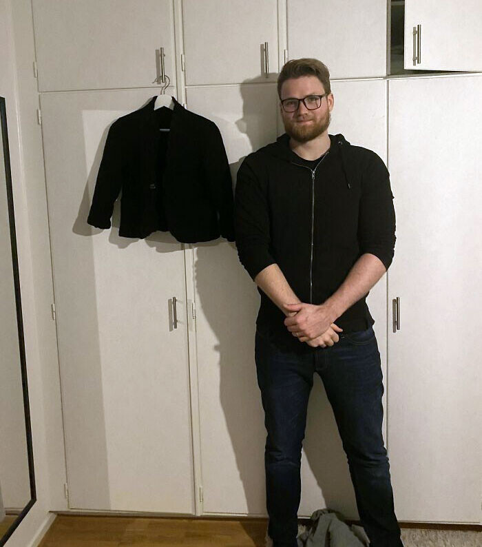 13. "Случайно уменьшила пиджак мужа. Муж — для масштаба" (фото: gielind/Reddit)