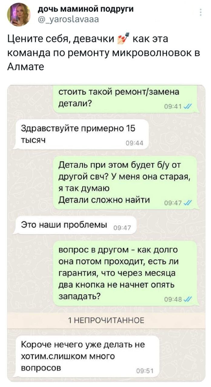 Прикольные твиты (27 фото) 29 ноябрь 2023 236 фото приколы 1 Новая порция скриншотов из популярной социальной сети для поддержания вашего отличного настроения! запостил(а) admin Вернуться назад 0 Смотрите также Прикольные твиты обо всём на свете (34 фото) Прикольные твиты (28 фото) Прикольные твиты (24 фото) Прикольные комментарии на Бугаге (30 фото) Прикольные комментарии на Бугаге (27 фото) А что там на главной? ))) Прокомментировать Введите код с картинки: Отправить Комментарии (1) #1 muninn884 Посетители 30 ноября 2023 13:18 0 Привет. Я Альбина, 25 лет, из России. Я ищу парня для общения, встреч, а возможно и для серьезных отношений. Напиши мне, пожалуйста, в Телеграм: albina648Привет. Подписывайся на телеграм канал знакомств и выбирай себе девушку по вкусу, переходи по ссылке: https://t.me/Lovzeo Или пиши в поиске телеграма: @Lovzeo Ответить