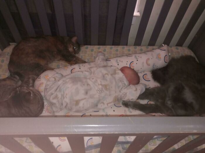 А ещё они являются прекрасными пушистыми нянями или охранниками с усами, внимательно следящими за детьми, пока те спят или бодрствуют.